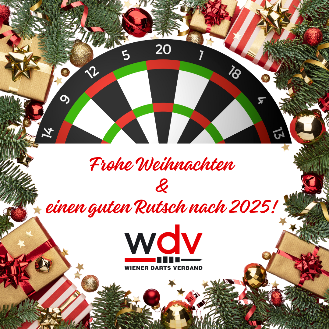 Der Wiener Darts Verband wünscht Dir, Deiner Familie und deinen Freunden Frohe Weihnachten und einen guten Rutsch ins Jahr 2025!