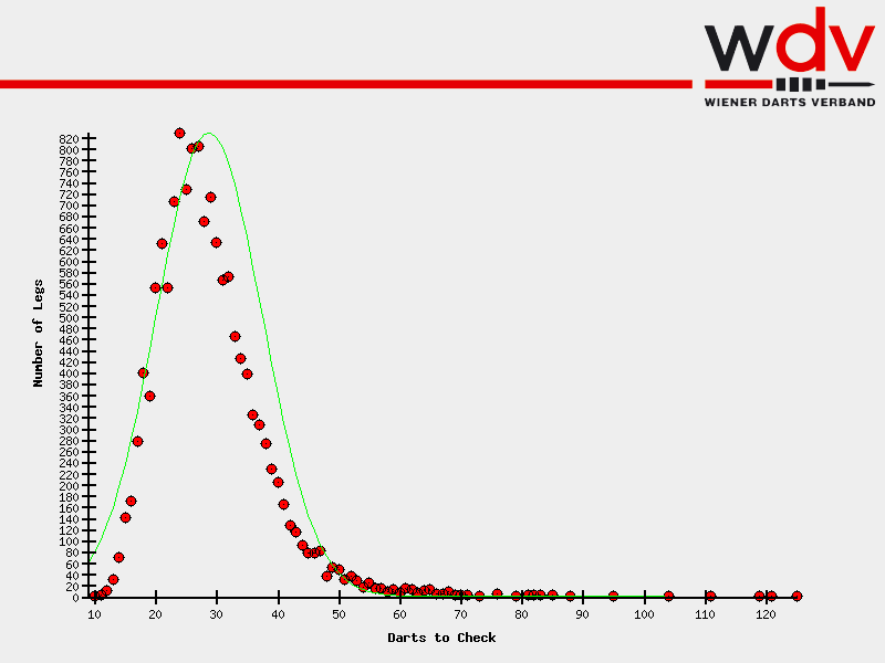 - Anzahl der Legs mit der gleichen Anzahl von "Darts to Check" (Anzahl).