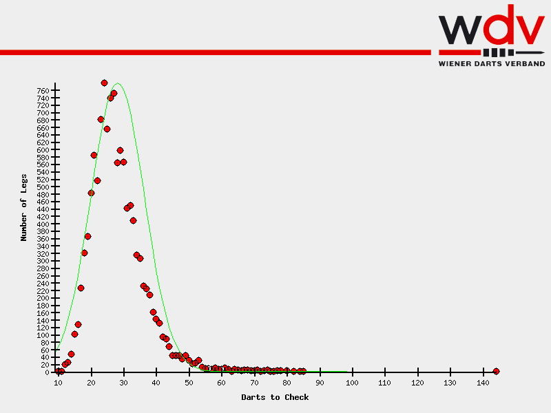 - Anzahl der Legs mit der gleichen Anzahl von "Darts to Check" (Anzahl).